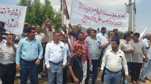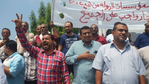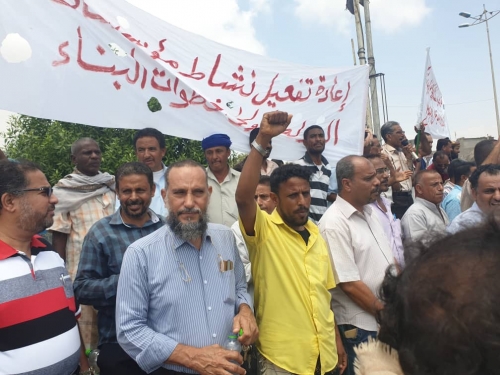 وتجمهر حشد من  موظفي شركة النفط بعدن بوقفة احتجاجية صباح اليوم الأحد أمام بوابة مصافي عدن مطالبين بإغلاق المساكب الغير قانونية التي استحدثتها مصافي عدن.
