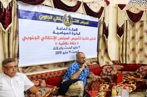 وكان الدكتور خالد بامدهف، رئيس الدائرة السياسية في الأمانة العامة لهيئة رئاسة المجلس، قد افتتح الحلقة النقاشية بالترحيب بالحضور ونقل تهنئة رئيس المجلس بالذكرى الثانية لتأسيس المجلس الانتقالي.