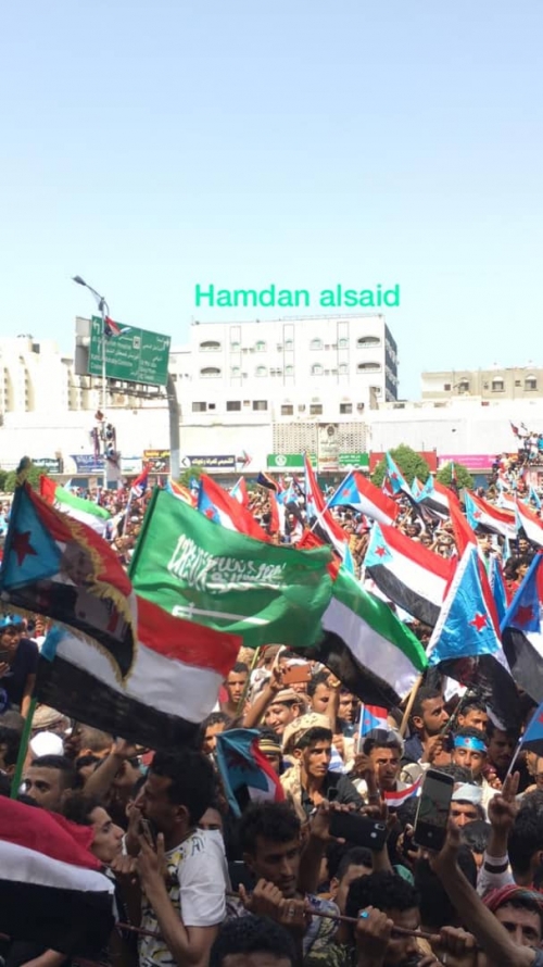 علم #السعودية يرفرف بين جموع المحتشدين بـ#العاصمة_عدن..