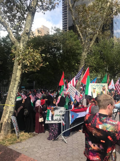 نظمت جالية ابناء الجنوب في امريكا اليوم في مشهد متواصل لمليونية الوفاء تظاهرة تعبر عن الوفاء لدولة الإمارات العربية المتحدة الشقيقة التي تتعرض لحملة اعلامية من مطابخ الإخوان المسلمين و مطابخ الحوثيين التي التقت اهدافهم واتفقوا ضد الامارات .