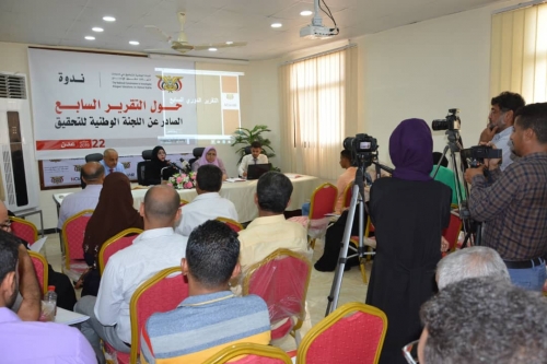 نظمت اللجنة الوطنية للتحقيق في ادعاءات انتهاكات حقوق الإنسان بمقرها في العاصمة المؤقتة عدن صباح اليوم ( الاحد ) الموافق 22 سبتمبر 2019 ندوه نقاشية تم خلالها استعراض التقرير السابع الصادر عن اللجنة خلال الفترة من 1 فبراير وحتى 31 يوليو 2019م والملخص التنفيذي للتقرير والذي كان قد تضمن بيانات حول أبرز الانتهاكات التي قامت اللجنة برصدها وتوثيقها والتحقيق فيها ورفع ما يلزم منها للجهات المختصة بغرض استكمال الاجراءات القانونية بشانها ومن ثم تحويلها الى القضاء ليقول كلمته الفصل فيها .