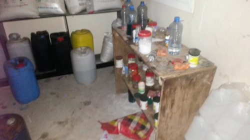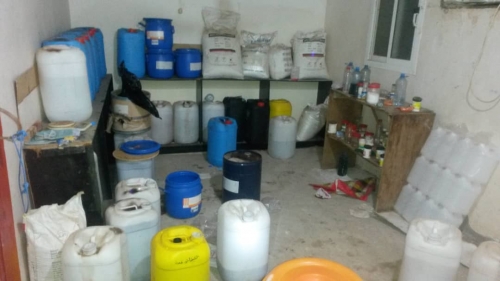 وبعد عمليه رصد وتحري دقيق من قبل قيادة الحزام الأمني تم العثور على المعمل وسط حي سكني ويحوي مواد كيماوية متنوعة وبكميات كبيرة ذو رائحة كريهة مركزة في احدى المنازل بالمدينة .