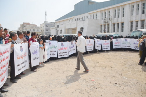 تنظيم أكبر وقفة احتجاجية لموظفين جامعة عدن أمام وزارة المالية(صور)