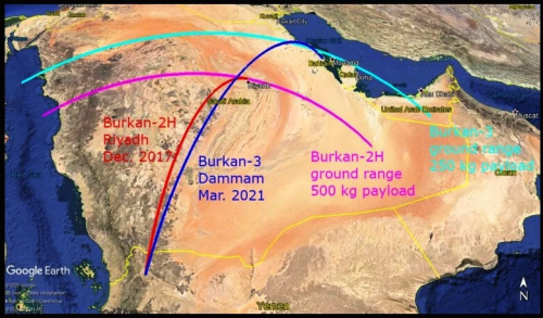 ويقول التحليل، إن المدى الأصلي لصواريخ “سكود بي” يصل لـ300 كيلومترا، تمكنت إيران من جعلها تتراوح بين 700 و 800 كيلومترا في نسخة “قيام، فيما بلغ المدى نحو 1200 كيلومترا في صواريخ “بركان 3” الحوثية.