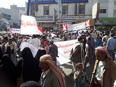 وقالت مصادر وكالة "خبر" للأنباء، أن المسيرة التي شارك فيها المئات من أبناء المحافظة انطلقت من شارع جمال وجابت شوارع مدينة تعز، وصولاً إلى أمام مبنى المحافظة.