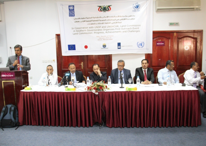 من جانبه استعرض رئيس لجنة الأراضي القاضي صالح طاهر أهم إنجازات اللجنة والمتمثلة في حصر 130 الف تظلم والتحقق من صحة القضايا والمستندات المصاحبة للمتظلمين وإصدار قرار في 30 ألف تظلم ومعالجة قضايا الأراضي المتنازع عليها في عدن وعددها 67 ألف معالجة.