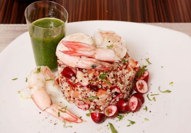 4. للتقديم:زيني طبق السلطة بحبّات التوت البرّي، واسكبي عصير الليمون الحامض عليه قبل تقديمه بارداً، مع الروبيان المسلوق.