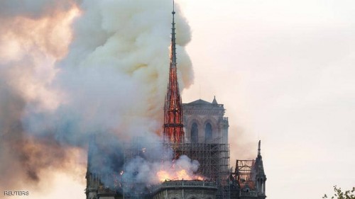 نتيجة حريق هائل.. انهيار برج وسقف كاتدرائية نوتردام بالكامل