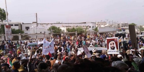 ونظمت التظاهرة وقفة أمام مبنى السلطة المحلية لمحافظة أبين.