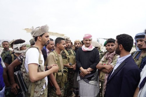 رافق الأمين خلال زيارته، القائد محمد سالم البوحر، قائد اللواء الثاني نخبة شبوانية، ورمزي الشعيبي رئيس انتقالي لحج، والأستاذ منصور زيد، رئيس الدائرة التنظيمية بالأمانة العامة لهيئة الرئاسة، والقائد خضر الجبواني، والأستاذ رائد ضباب العولقي، والأستاذ أصيل بن رشيد.