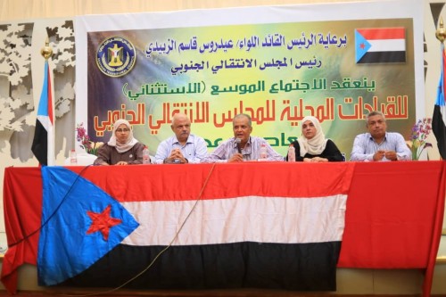 عقدت القيادة المحلية للمجلس الانتقالي الجنوبي في العاصمة عدن، اليوم الاثنين، وبرعاية الرئيس القائد عيدروس قاسم الزبيدي رئيس المجلس الانتقالي الجنوبي، اجتماعاً استثنائياً للقيادات المحلية للمجلس الانتقالي في العاصمة، بحضور أعضاء من هيئة رئاسة المجلس الانتقالي، ورؤساء وممثلين عن دوائر الأمانة العامة للمجلس.