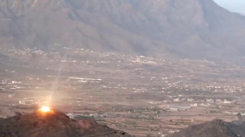 ودكت مدفعية اللواء الأول صاعقة مواقع الحوثيين في مرتفع يطل على الريبي.