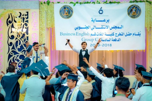 أقيم صباح اليوم الاثنين حفل طلاب الدفعة السادسة" group c " بكلية اللغات بجامعة عدن، اليوم الاثنين، برعاية المجلس الانتقالي الجنوبي.