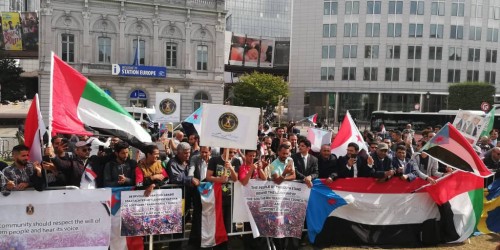 مظاهرة حاشدة لأبناء الجنوب في بلجيكا دعما وتأييدا للإمارات (صور)