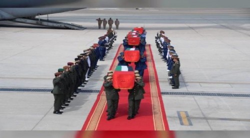 وكانت القيادة العامة للقوات المسلحة الإماراتية، قد نعت أمس الشهداء الستة الذين انتقلوا إلى جوار ربهم نتيجة حادث تصادم آليات عسكرية خلال أدائهم لواجبهم الوطني في أرض العمليات، سائلة الله عز وجل أن يتغمدهم بواسع رحمته ومغفرته ويسكنهم فسيح جناته ويلهم أهلهم الصبر والسلوان.