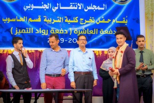تحت شعار (مستمرون بدعم الأجيال)، احتفلت دفعة (رواد التميز) قسم الحاسوب بكلية التربية بجامعة عدن بتخرجها اليوم السبت، وبرعاية كريمة من المجلس الانتقالي الجنوبي.