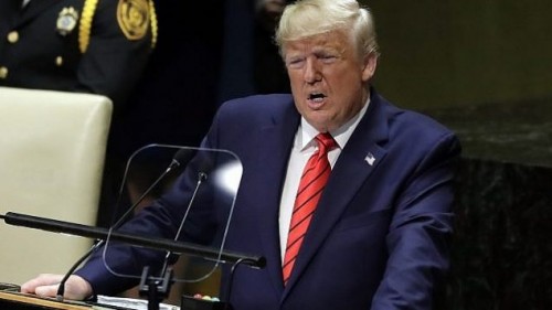 ودعا الرئيس الامريكي خلال كلمة له أمام الجمعية العامة للأمم المتحدة في نيويورك كل دول العالم لتضييق الخناق على الاقتصاد الإيراني ، قائلا إنه لا يجب أن تساند أي دولة تعطش إيران للدماء على حد تعبيره، وحمل ترامب النظام الإيراني مسؤولية الوقوف وراء هجمات تم تنفيذها في أماكن مختلفة حول العالم.