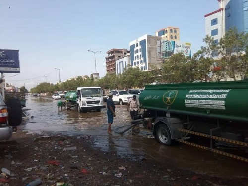 وتم أيضا شفط دفعة أولى من المياه الراكدة في شارع الشهيد مدرم بمديرية المعلا .