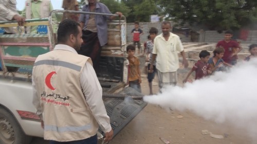 ضمن حملة الاستجابة العاجلة التي تنفذها دولة الإمارات العربية المتحدة في المحافظات المحررة وإشراف الهلال الأحمر الإماراتي نفّذ مكتب الصحة العامة والسكان بمحافظة أبين حملة الرش الضبابي لمكافحة البعوض الناقل للملاريا وحمى الضنك،