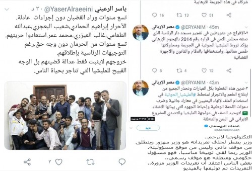 ففي حين أعلن وزير الاعلام داخل حكومة الشرعية عن إدانته لإفراج مليشيا الحوثي عن المتهمين المنتمين أصلاً لحزب الاصلاح ( اخوان اليمن ) . أشاد وزراء الاصلاح داخل الحكومة ذاتها بخطوات الحوثيين واعتبروها انجاز تاريخي.