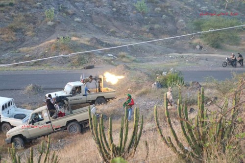 واشارت مصادر محلية الى إن تبادلاً عنيفاً للقصف بالأسلحة الثقيلة والمتوسطة احتدم بين الجانبين، عصر اليوم الأحد، واستخدمت المليشيات الحوثية مدافع الدبابات".