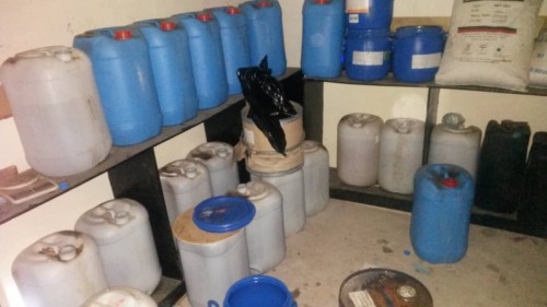 وبعد عمليه رصد وتحري دقيق من قبل قيادة الحزام الأمني تم العثور على المعمل وسط حي سكني ويحوي مواد كيماوية متنوعة وبكميات كبيرة ذو رائحة كريهة مركزة في احدى المنازل بالمدينة .