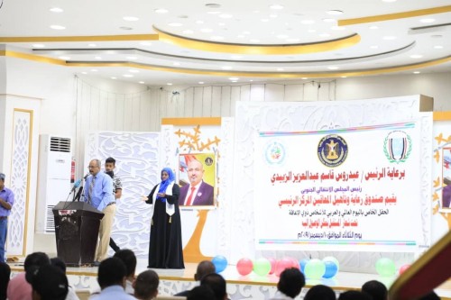 وفي الحفل الذي حمل شعار "المستقبل يمكن الوصول إليه"، ألقى الأستاذ فضل محمد الجعدي، مساعد الأمين العام لهيئة رئاسة المجلس الانتقالي الجنوبي، كلمة نقل في مستهلها تحيّات الرئيس القائد عيدروس قاسم الزُبيدي، رئيس المجلس الانتقالي الجنوبي لهذه الشريحة العظيمة.