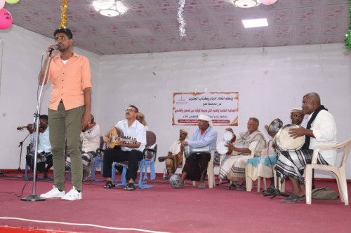 بدء الحفل بأداء النشيد الوطني الجنوبي ثم تخلل الحفل عدد من الوصلات الفنية والأدبية والشعرية والتي ادها كل من الفنانيين علاء كرد وسامي عنبول ووضاح كرد والشعراء كمال منيعم وأمين غالب وعلي حامد السقاف وغيرهم من الفنانيين والشعراء الذين احيوا موروث ساده الاهمال وعدم الاهتمام من قبل السلطة المحلية لسنين طويلة ولا يزال الفن والأدب يعاني وسط محاولات فردية وجماعية للصمود.