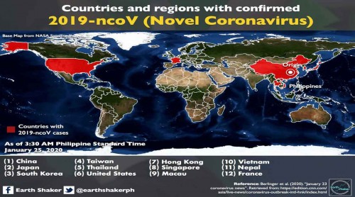 والدول التي حل بها هذا الوباء بعد الصين؛ دولة نشأته، هي: اليابان وكوريا الجنوبية وتايوان وتايلندا والولايات المتحدة وهونغ كونغ وسنغافورة وماكاو وفيتنام ونيبال، وأخيرا فرنسا.