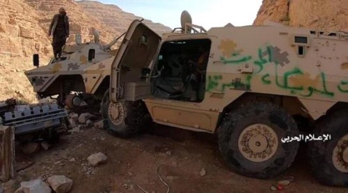 واعلن التلفزيون الرسمي الحوثي يقول ان الجماعة سيطرت على جبل قشعان وسلسلة جبال حبش الاستراتيجية في خب والشعف.