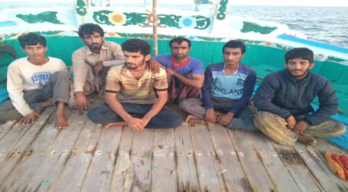 وألقت القوة البحرية القبض على خمسة من أفراد طاقم زورق التهريب يحملون الجنسية الإيرانية وباكستاني.