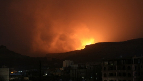 وبحسب مصادر محلية فإن انفجارات هزت قاعدة الديلمي الجوية جراء غارات لمقاتلات التحالف العربي، وسط تحليق مكثف فوق المنطقة.