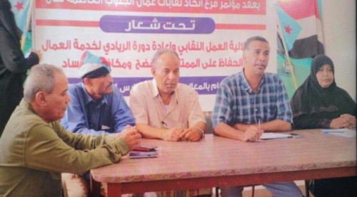 عُقد مؤتمر فرع إتحاد نقابات عمال الجنوب العاصمة عدن اليوم السبت ،تحت شعار "استقلالية العمل النقابي وإعادة دوره الريادي لخدمة العمال والحفاظ على الممتلكات وفضح ومكافحة السفاد" برعاية الرئيس القائد عيدروس قاسم الزُبيدي رئيس المجلس الانتقالي الجنوبي وبإشراف الاتحاد العام لنقابات عمال الجنوب ومكتب الشؤون الاجتماعية والعمل العاصمة عدن.