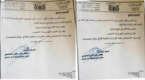 وقضى الأمر الإداري الأول بتكليف النقيب عدنان محمد بن محمد علي المحرمي بالعمل مديراً لقسم شرطة كابوتا والغاء أي تكليف سابق بهذا المنصب.