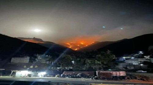 اندلع حريق هائل في جبال يافع منطقة حرضة مسببا الخوف الهلع بأوساط السكان.