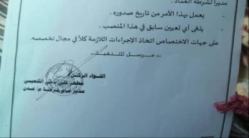 قرار جديد لمدير أمن عدن بتعيين مديرا لقسم شرطة العماد بمديرية دار سعد