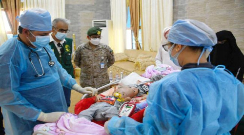 ونقلت الفرق الطبية التوأمين، إلى مستشفى الملك عبدالله التخصصي للأطفال بوزارة الحرس الوطني لدراسة حالتهما والنظر في إمكانية إجراء عملية فصلهما.