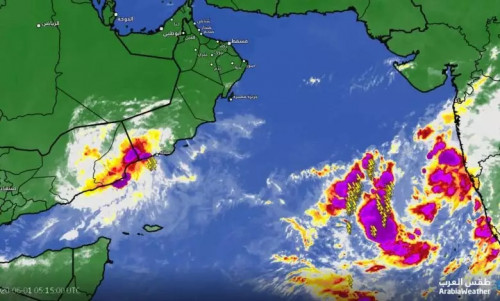 وأوضح الفلكي محمد عياش، في بلاغ صحفي، نشر في وقت سابق، بأن هناك مُؤشرات أولية تُوحي بِحدوث إضطرابات جوية محتملة فوق مياه بحر العرب وتشكُل حاله مدارية ماطرة (منخفض جوي عميق ـ عاصفه مداريةـ إعصار مداري) بِحلُول مُنتصف شهر مايو الجاري.