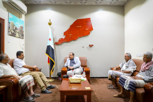 التقى اللواء الركن أحمد سعيد بن بريك، رئيس الجمعية الوطنية للمجلس الانتقالي الجنوبي، اليوم الثلاثاء، في مقر الجمعية برئيس الهيئة التنفيذية للقيادة المحلية للمجلس في محافظة شبوة علي أحمد حسن الجبواني.