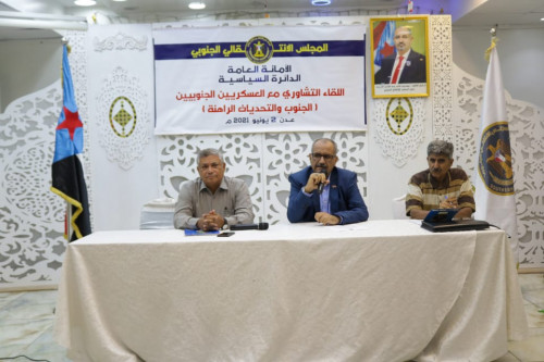 عقدت الدائرة السياسية في الأمانة العامة لهيئة رئاسة المجلس الانتقالي الجنوبي، اليوم الأربعاء في العاصمة عدن، لقاءً تشاورياً مع العسكريين الجنوبيين تحت عنوان "الجنوب والتحديات الراهنة".
