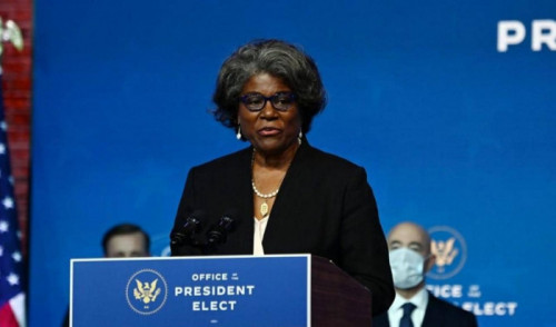 رحبت المندوبة الأمريكية لدى الأمم المتحدة ليندا توماس جرينفيلد، اليوم الجمعة، بالفوز المشرف لدولة الإمارات العربية المتحدة بعضوية غير دائمة بمجلس الأمن الدولي.