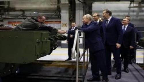الرئيس الروسي فلاديمير بوتين خلال زيارة لأحد المصانع العسكرية