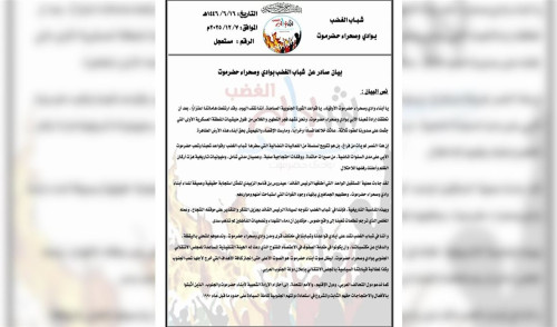 شباب الغضب يدعو أبناء وادي حضرموت للاحتشاد في الاعتصام المفتوح بسيئون