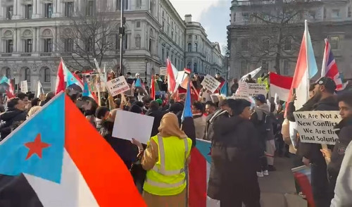 نظمت جالية أبناء الجنوب في المملكة المتحدة وقفة أمام مقر رئاسة الوزراء البريطانية، للمطالبة بالاعتراف بحق شعب الجنوب في استعادة دولته.