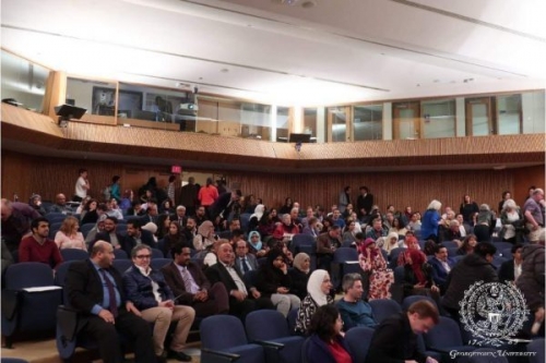 وشهد العرض حضورا نوعيا من السلك الدبلوماسي والاكاديميين والطلاب والمهتمين من الجامعة وكذا عدد من أبناء الجالية اليمنية في واشنطن .