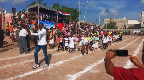 وشهد الاحتفال تجمعاً ضخماً لأبناء المحافظة الذين حملوا الأعلام الجنوبية ورددوا الهتافات المعبرة عن حبهم وولائهم للوطن الجنوبي، كما تزينت الساحة بالزينة الوطنية وصور الرئيس القائد عيدروس الزُبيدي.