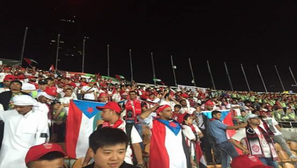 أعلام دولتي الجنوب والامارات تملا مدرجات ملعب صيني