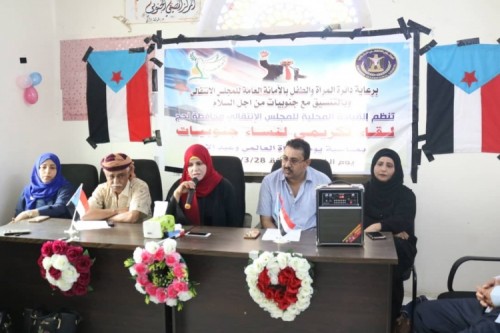 ومن جانبها، قدمت الأستاذة ثريا مجمل، رئيسة جنوبيات من أجل السلام في محافظة لحج، الشكر للمجلس الانتقالي الجنوبي لدعمه وتشجيعه للمرأة الجنوبية، مؤكدة أن لذلك لدلالات عظيمة يرسمها المجلس الانتقالي الجنوبي في طريق استعادة الدولة الجنوبية التي تحفظ الحق للمرأة وترفع من شأنها.