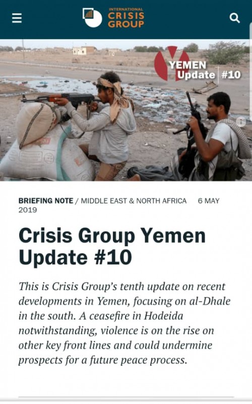 مجموعة الازمات الدولية: الحرب بحدود #الضالع مرتبطة باستقلال الجنوب وتدور بين قوات الانتقالي و#الحوثيين