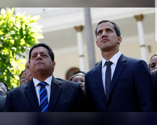 زعيم المعارضة الفنزويلية خوان جوايدو (إلى اليمين) ونائبه إدجار زامبرانو بصورة من أرشيف رويترز